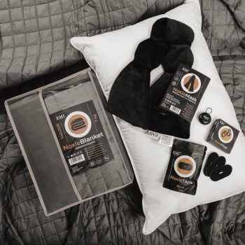 Setul Noxie SET de produse de somn EMI este un pachet complet pentru oricine dorește o calitate maximă a somnului și o recuperare perfectă. Acesta include pătura ponderată NoxieBlanket de 9 kg pentru calmarea corpului, masca ponderată NoxieMask pentru relaxarea ochilor, dopurile de somn NoxiePlugs pentru atenuarea zgomotului și banda bucală NoxieTape pentru promovarea respirației nazale naturale.