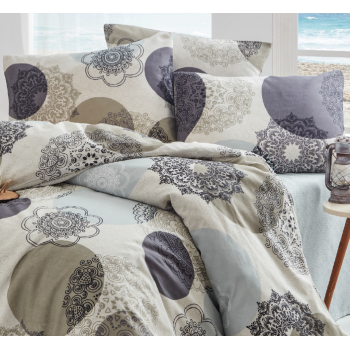 Lenjeria de pat din bumbac Tamira impresionează printr-un model ornamental modern în tonuri moi de bej-maro, care va oferi dormitorului dvs. un aspect elegant și confortabil. Combinația de 70% bumbac și 30% poliester aduce moliciune plăcută și respirabilitate, precum și durabilitate mai mare, contracție mai mică și întreținere ușoară. Închiderea practică cu nasturi asigură o utilizare convenabilă și un somn confortabil.