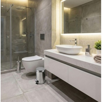 Accesorii de baie moderne care vor face orice baie mai atractivă. Setul Nero este fabricat din oțel inoxidabil. Include un suport pentru hârtie igienică, coș de gunoi și perie de toaletă cu suport.