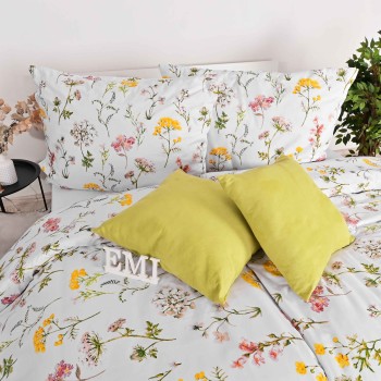 Lenjeria de pat din bumbac Luiza EMI este fabricată din bumbac 100% deluxe de înaltă calitate și moale. Aceasta este caracterizată de proprietăți precum durabilitatea, întreținerea ușoară și rezistența culorilor. Modelul floral frumos vă va cuceri imediat. Datorită acestor așternuturi, fiecare dormitor va înflori.