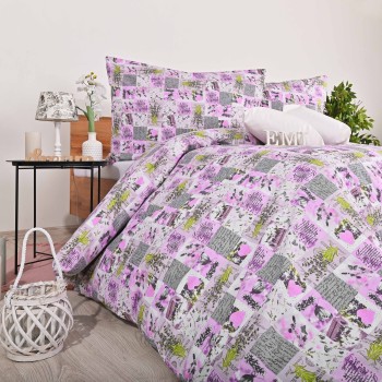 Sold outLenjeria de pat Amadora EMI cu model violet elegant adaugă o notă rafinată dormitorului dvs. Fabricată din bumbac deluxe 100%, este moale, durabilă și respirabilă. Fixarea se face ușor cu nasturi.