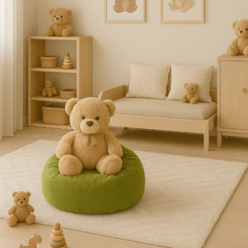 Geanta de canapea verde leneșă este un accesoriu excelent pentru camera unui copil, birou sau club, depinde doar de alegerea culorii. Geanta este fabricată din piele de căprioară. Umplutura șezlongului constă din bile de polistiren.