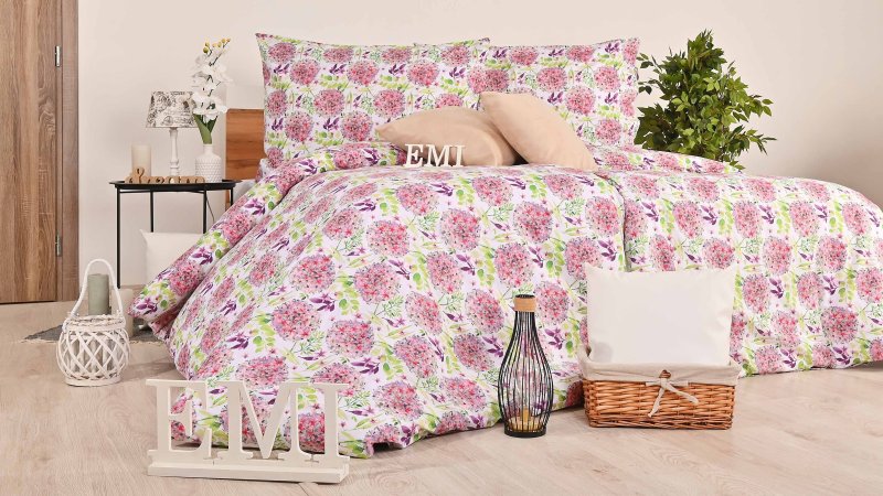 Lenjeria de pat Cindy EMI va transforma dormitorul într-un spațiu de relaxare. Este realizată din bumbac 100% deluxe, plăcut la atingere și durabil, iar culorile își păstrează intensitatea chiar și după mai multe spălări. Închiderea se face cu nasturi practici.
