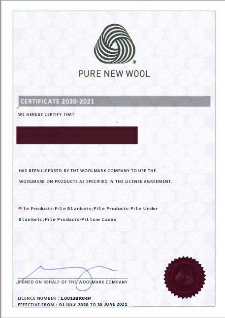 Acest certificat este o garanție a celei mai înalte calități. El garantează durabilitatea și calitatea produsului. Sigla de certificare Woolmark dă asigurări că produsul certificat a fost autentificat și îndeplinește standardele exigente ale Woolmark.